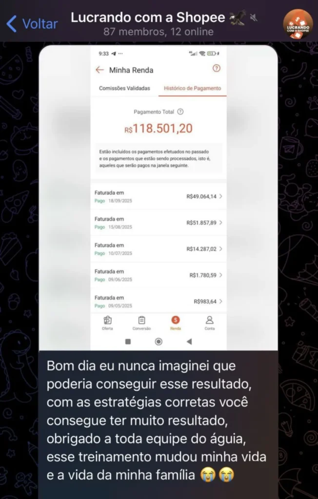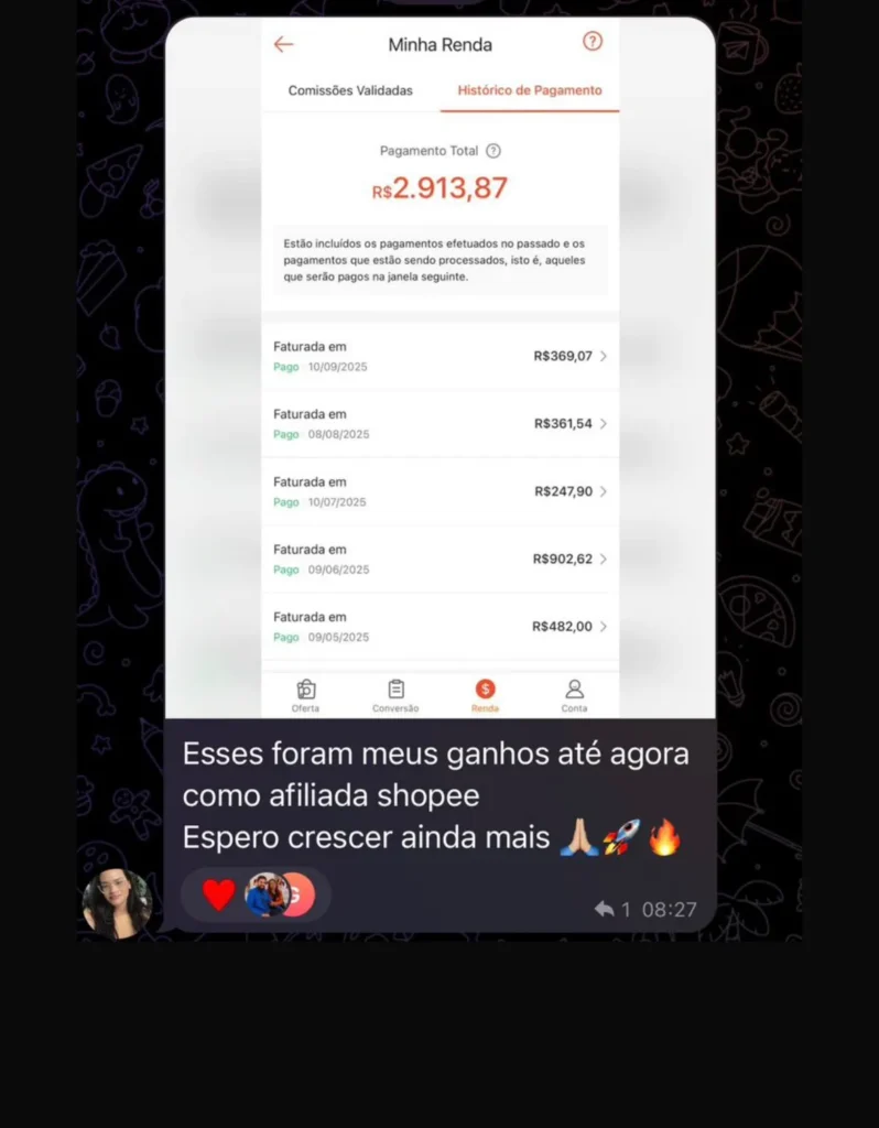 As mensagens que antes me deixavam ansioso eram de contas atrasadas e cobranças. Hoje, as notificações que chegam no celular são pagamentos caindo direto da Shopee e outras plataformas. Se a Shopee me paga, também pode pagar você.
